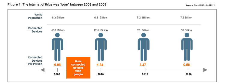 According to the Cisco Internet Business Solutions Group, the IoT represents the point in time when more “things or objects” are connected to the Internet than people. Based on this definition, the IoT was born between 2008 and 2009.