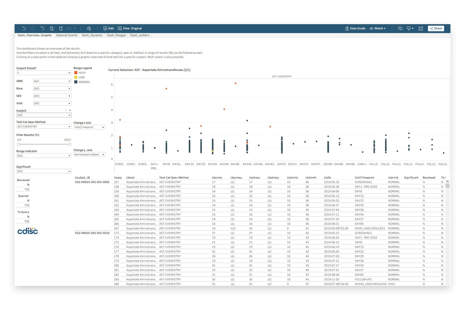 Unlock the full potential of your clinical trial data with SGS's comprehensive data visualization dashboards. Our partnership with Tableau, the industry leader in powerful and personalized analytics software, ensures that you have complete visibility and control over your clinical study progress.