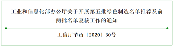 本月1日,国家工业和信息化部发布了《关于开展第五批绿色制造名单推荐及前两批名单复核工作的通知》,正式拉开了新一轮绿色制造名单的评审工作。