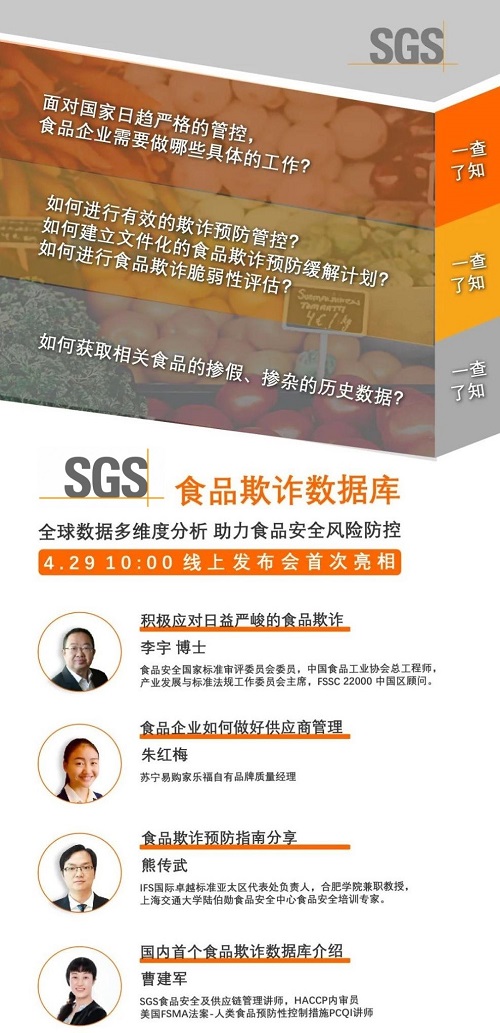 直击“线上发布会”现场,您将第一时间了解关于SGS食品欺诈数据库的更多信息。