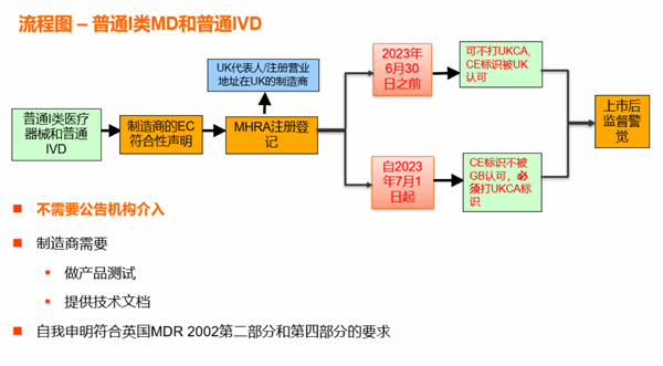 Note:定制设备的注册将与设备风险等级一致;投放北爱尔兰市场的I类设备、定制设备和普通IVD必须继续正常注册。