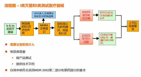2021年1月1日起,投放英国市场的医疗器械需有UKCA或CE标识;在特定情况下,需在标签上显示公告机构或批准机构的编号;2023年7月1日前,英国市场接受CE标识的设备;2023年7月1日后,英国市场接受CE+UKCA标志的设备或者UKCA标志设备。