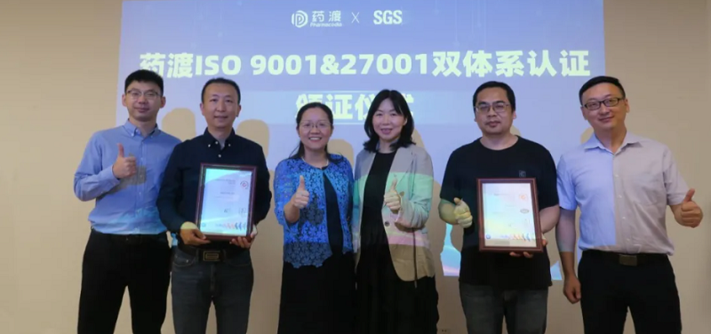 近日,SGS为药渡经纬信息科技(北京)有限公司(以下简称“药渡”)颁发ISO9001质量管理体系、ISO/IEC27001信息安全管理体系证书,标志着药渡在质量管理、信息安全管理已经达到国际水平。