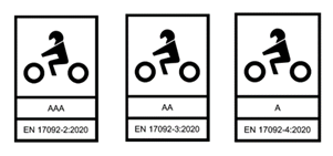 EN 17092《摩托车驾驶员用防护服-要求和试验方法》(共6部分)适用于摩托车公路骑行用AAA, AA, A, B, C级防护服。