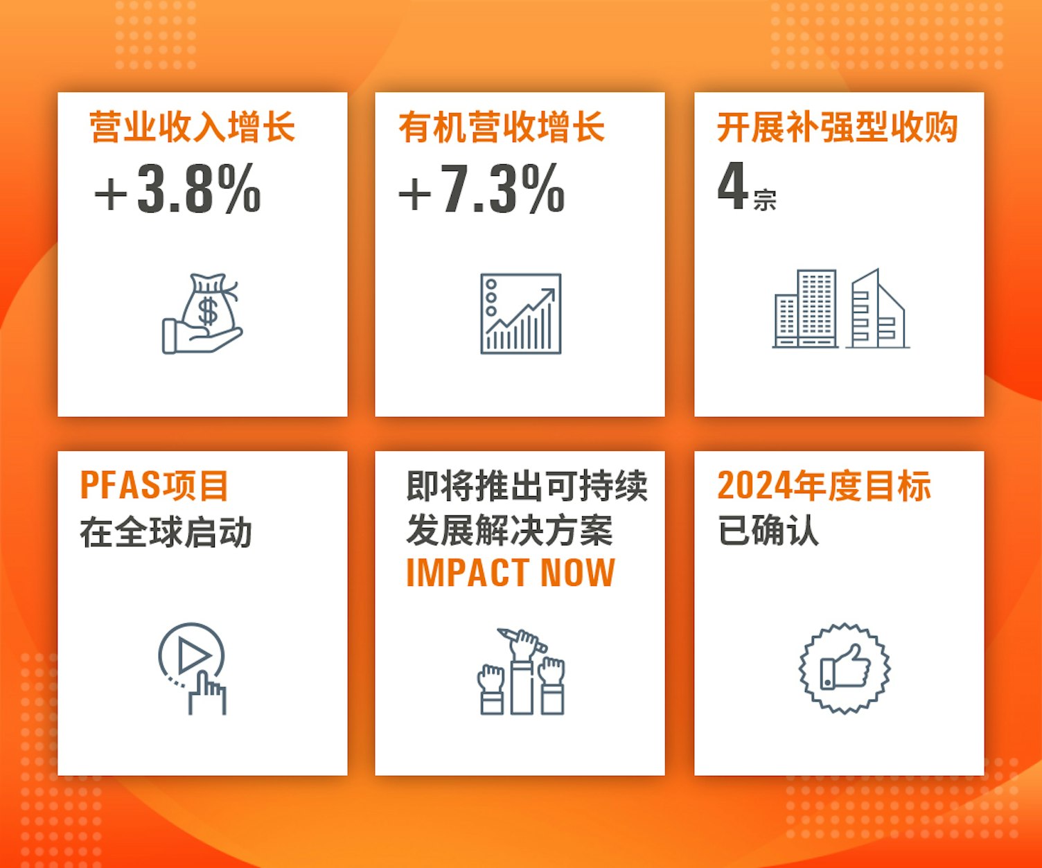 - 在ESG、社会责任审核和能源认证的带动下,可持续发展业务实现了高个位数增长